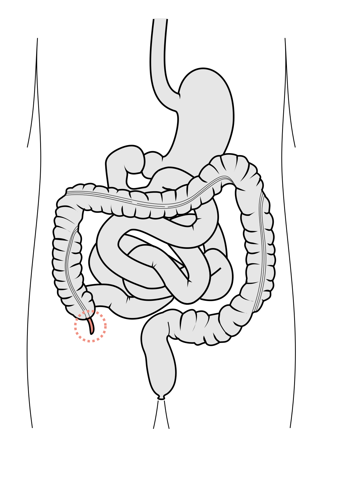The vermiform appendix is a narrow, finger-shaped pouch attached to the cecum at the start of the large intestine. Long thought to be vestigial, recent research suggests it may serve as a reservoir for beneficial gut bacteria. Appendicitis, its inflammation, is one of the most common surgical emergencies.