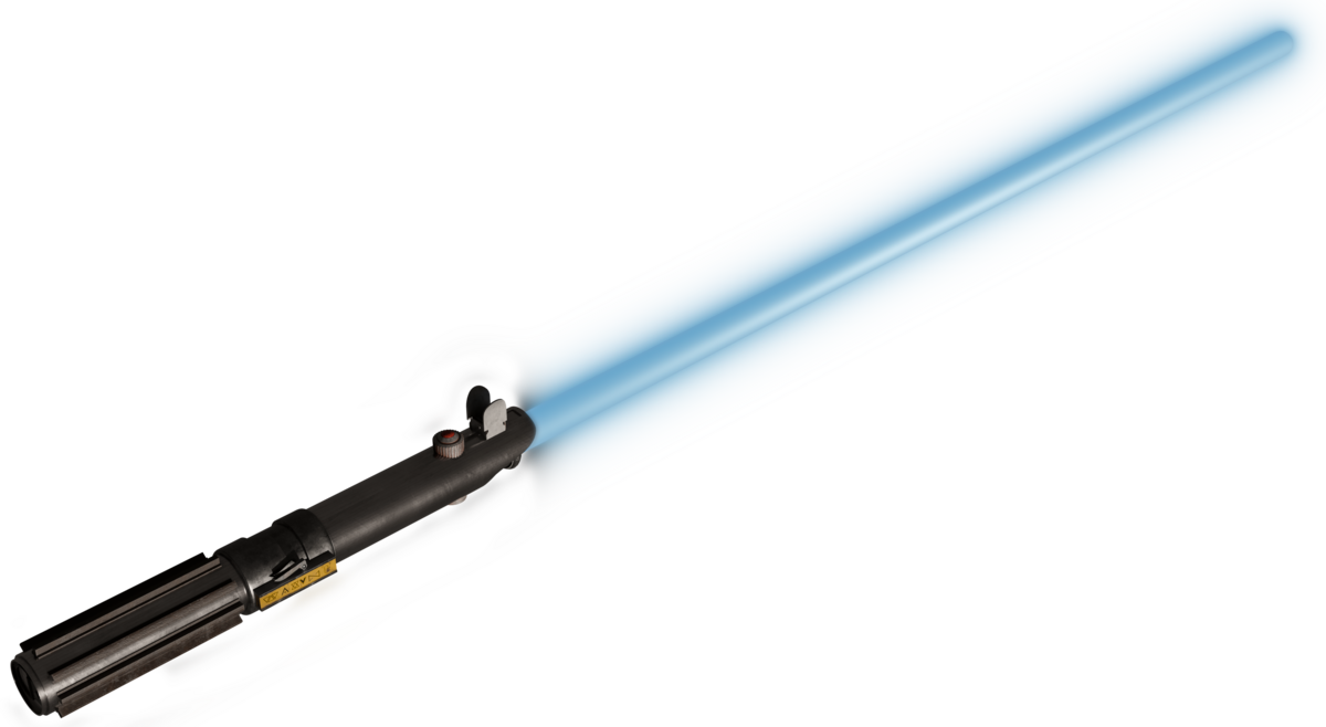 The lightsaber is the signature weapon of the Star Wars universe, a plasma blade powered by a kyber crystal and projected from a metal hilt. According to canon, standard blade length is roughly 0.91 to 1.37 meters. The hilt itself is about 25-30 cm long, and the whole assembly weighs very little since the blade is made of contained plasma. Real-world prop sabers weigh about 0.45 kg for the hilt alone.