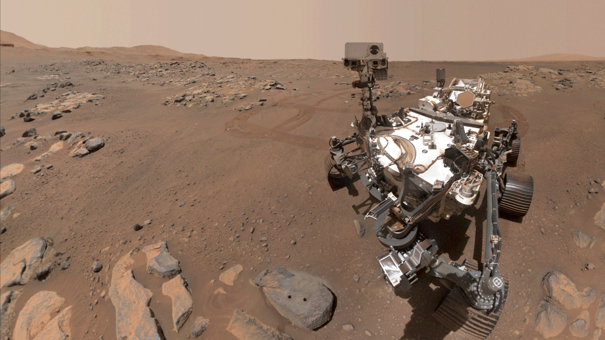 NASA's Perseverance rover landed on Mars on February 18, 2021, in Jezero Crater. It weighs 1,025 kg and is powered by a plutonium-238 radioisotope thermoelectric generator that will keep it running for at least 14 years. It carries 23 cameras, two microphones (recording sound on Mars for the first time), and the Ingenuity helicopter. It is also collecting rock samples for a future return mission to Earth.