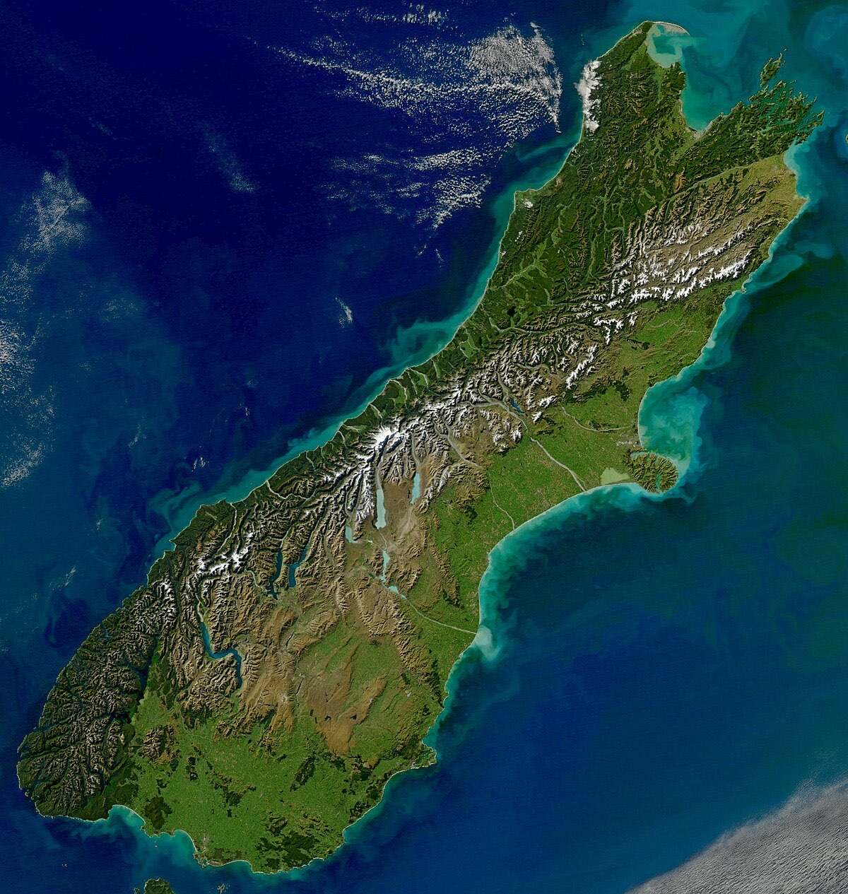 New Zealand's larger island with fjords, glaciers, and the Southern Alps/Islands
